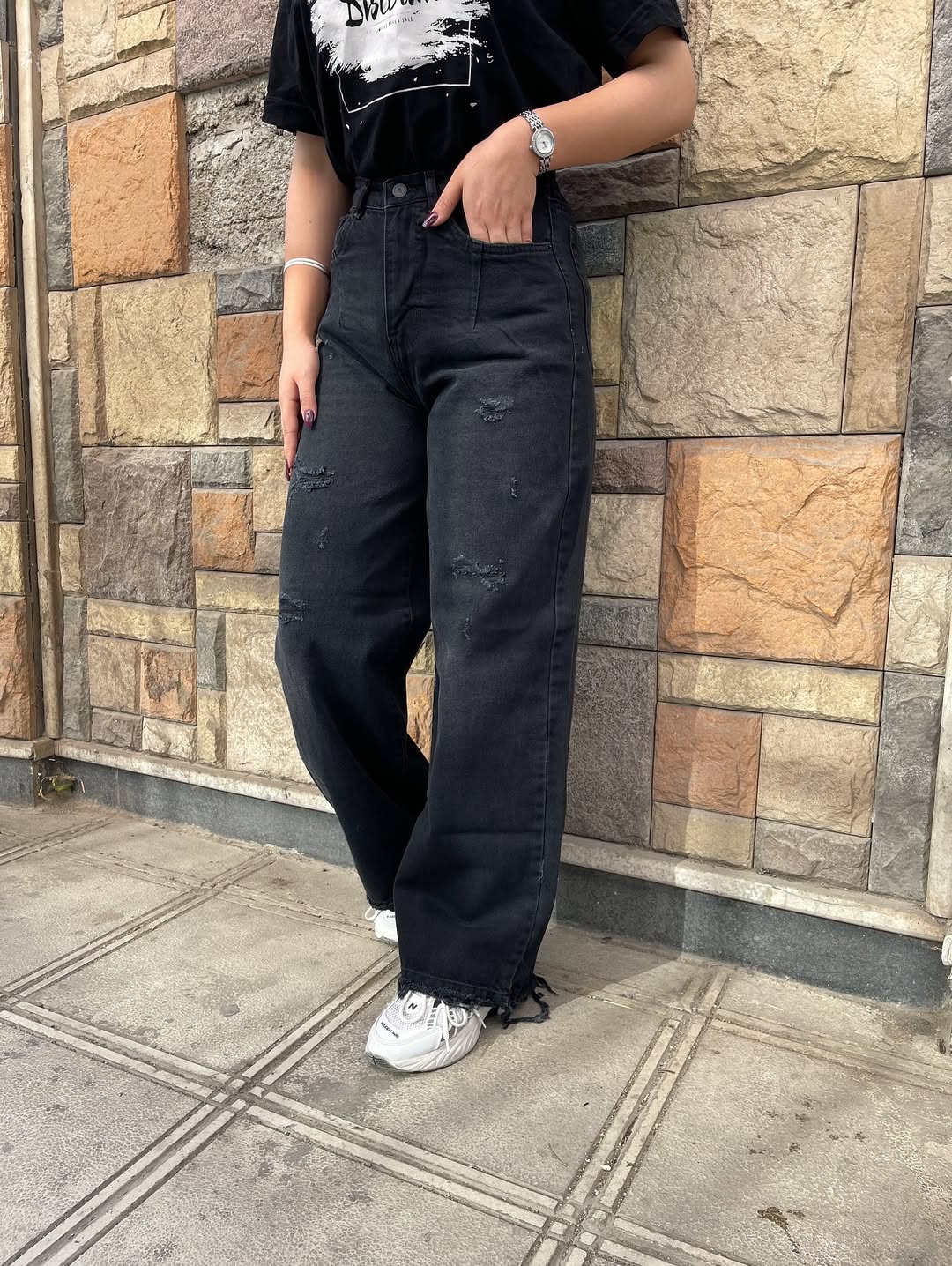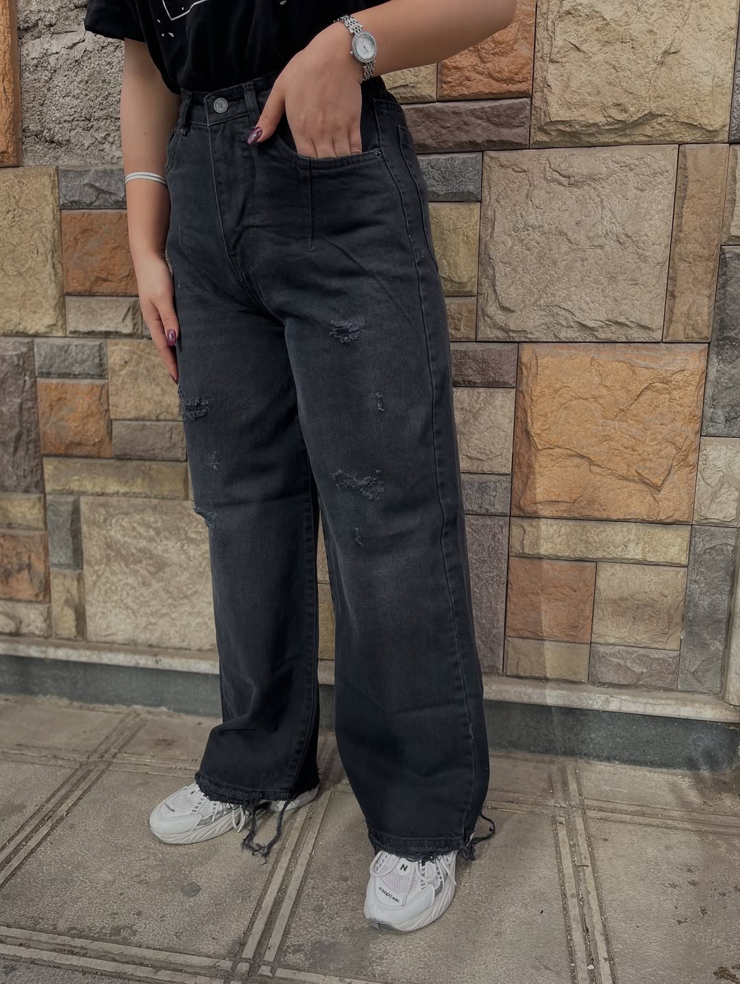 شلوار نیم‌بگ زغالی تیره | قد ۱۱۰–۱۱۵ – سایز ۵۰