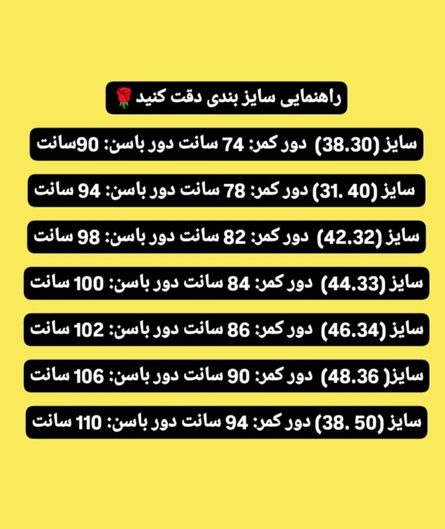 سایز (38.30) دور کمر: 74 سانت دور باسن: 90سانت